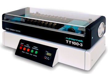 トーションテスターTT100はISO 10373-1,5,9に準拠してICカードのダイナミックストレス捻り試験を行うものです。
